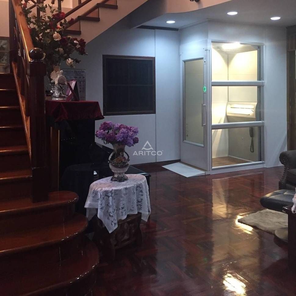 瑞致款家用電梯是Aritco電梯中最小款,共三種尺寸,本案例預(yù)留尺寸僅需1170x910mm,無需機(jī)房和底坑,可滿足多數(shù)復(fù)式樓內(nèi)安裝電梯的要求。
