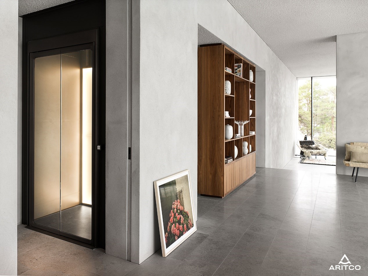 北歐設計崇尚極簡的風格,追求以實現(xiàn)功能為目的的外觀設計,追求極簡線條,器物本身即藝術,是功能又是裝飾。瑞特科S系列家用電梯的燈光設計,不僅實現(xiàn)了電梯的照明,同時又增加了空間光影的藝術感。精選的藝術家作品嵌入到背景墻,每一款都是背景墻保護著空間,每一款又是藝術品點綴著空間。